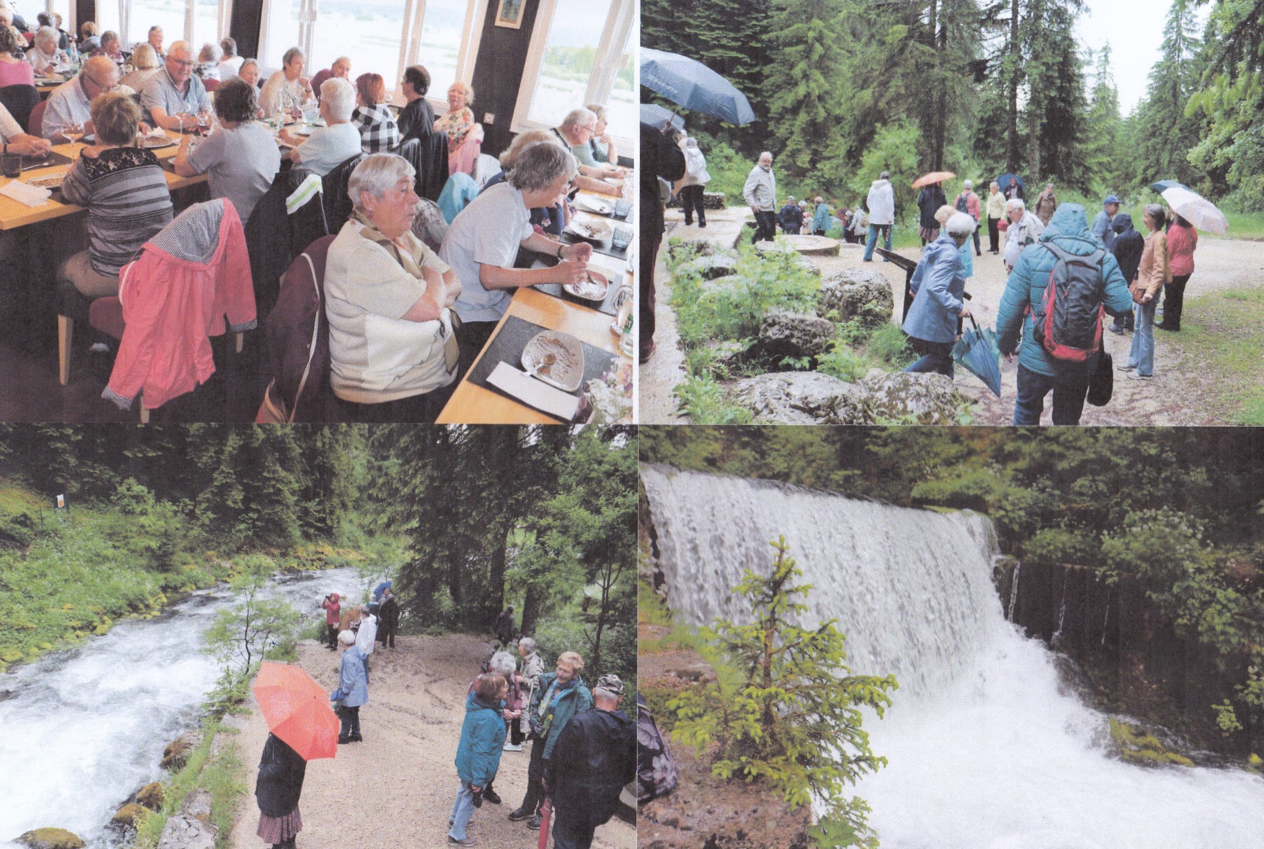 C’est l’heure du retour avec un arrêt à Mouthe. Si nous avons la Sibérie de la Suisse à la Brévine, les Français ont leur Sibérie à Mouthe. C’est aux abords de ce village que le Doubs prend sa source, que nous visitons. Vu les conditions météorologiques de ces derniers jours, voire semaines, le spectacle valait le déplacement. Si à l’aller (env. 10 minutes) les parapluies étaient les bienvenus, au retour ils étaient fermés.